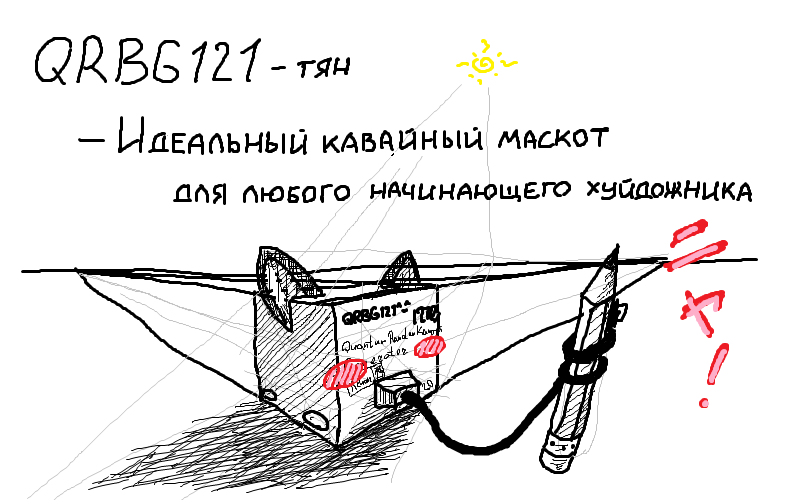 blush_stickers cat_ears cube no_humans pencil perspective pun qrbg121-chan sketch